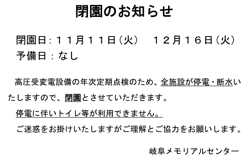 岐阜メモリアルセンター 行事予定(11月・12月)