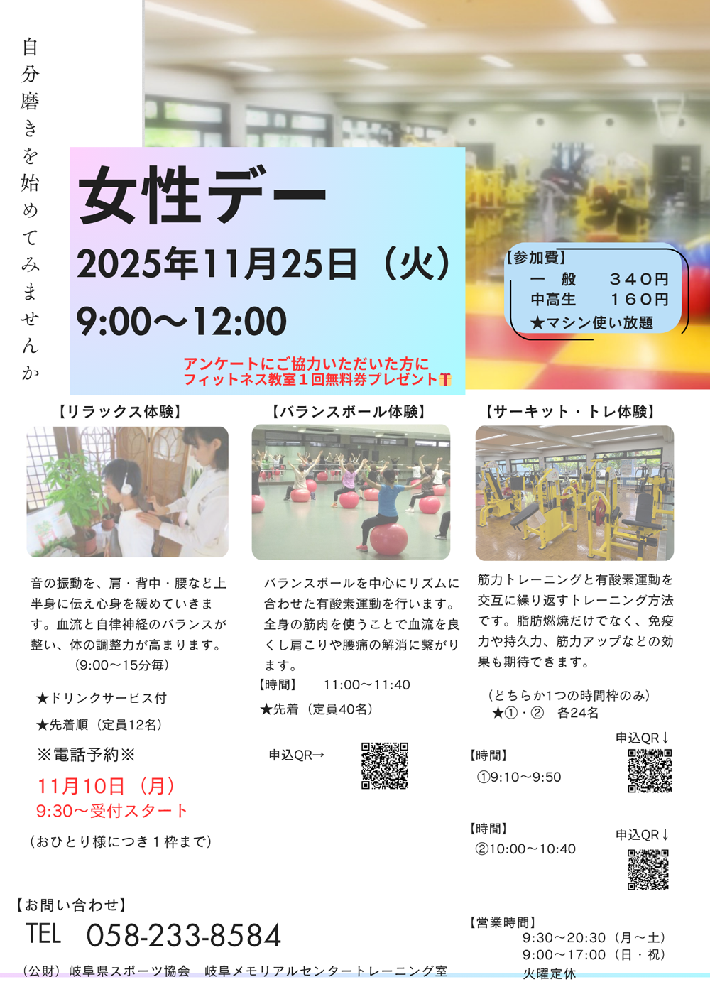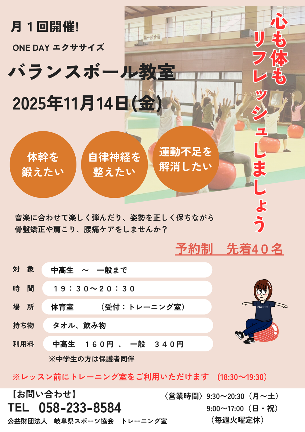 インフォメーションに11月のトレーニング室 営業日を掲載しました