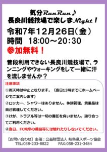 12月26日(金)「気分RUNRUN♪長良川競技場で楽しまnight!!」