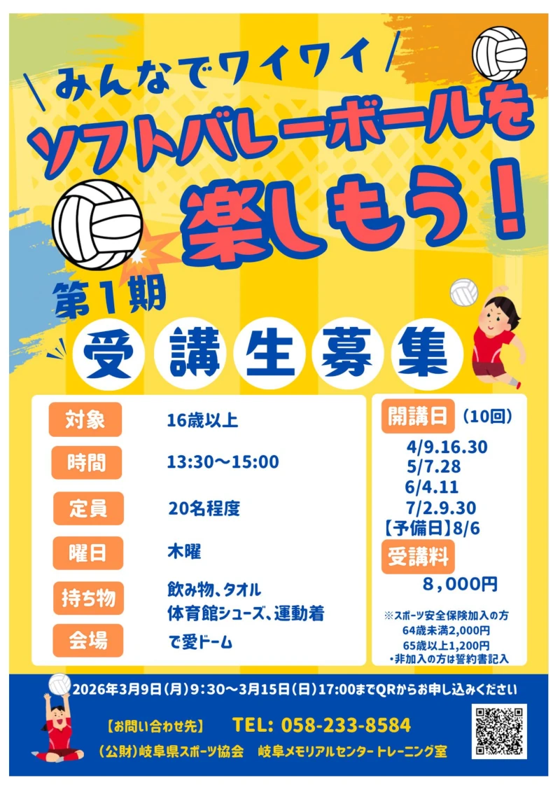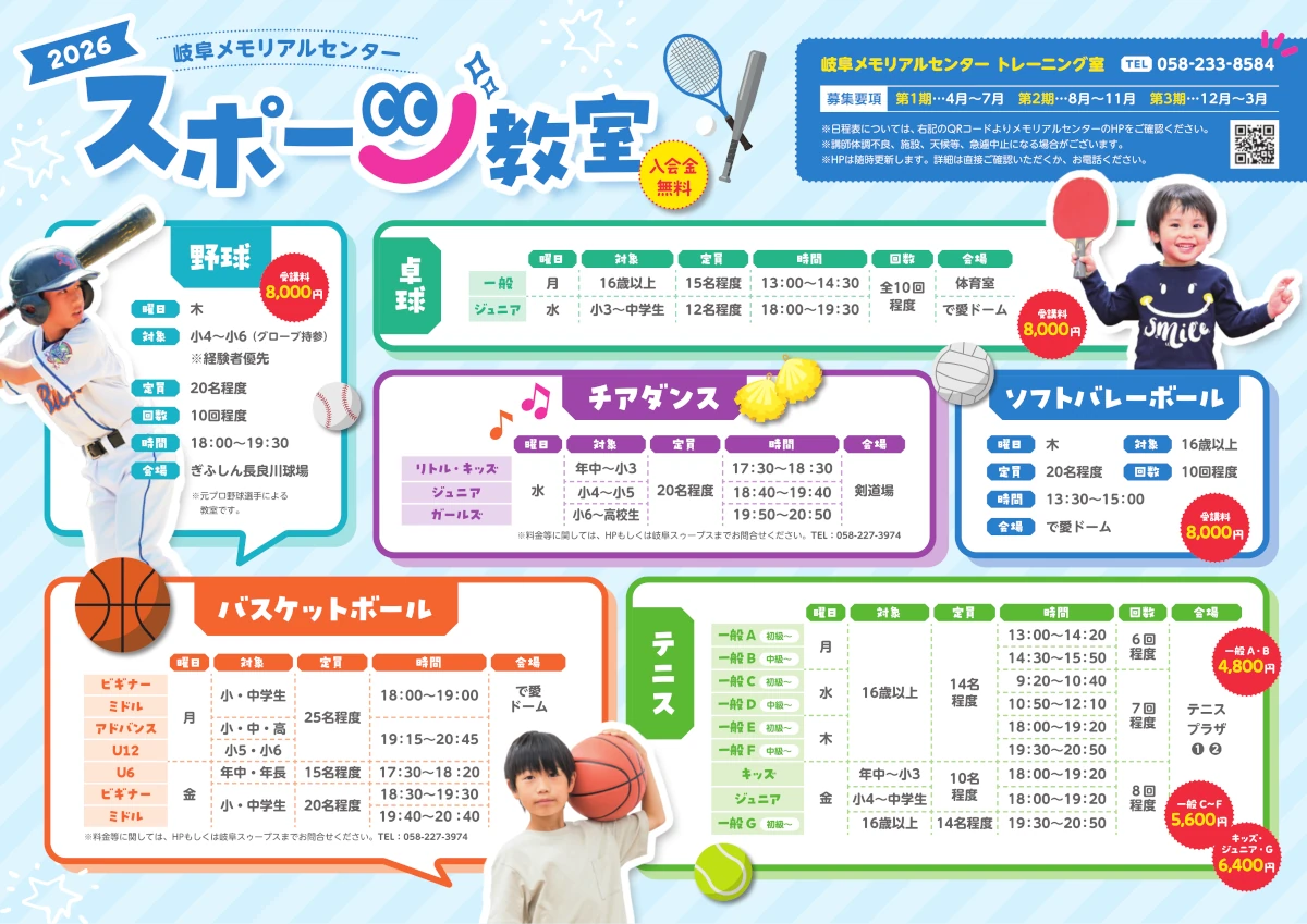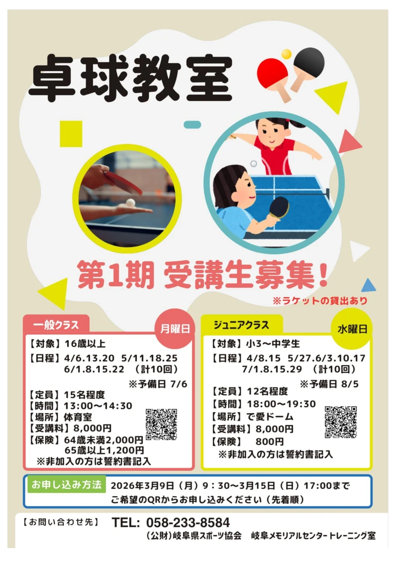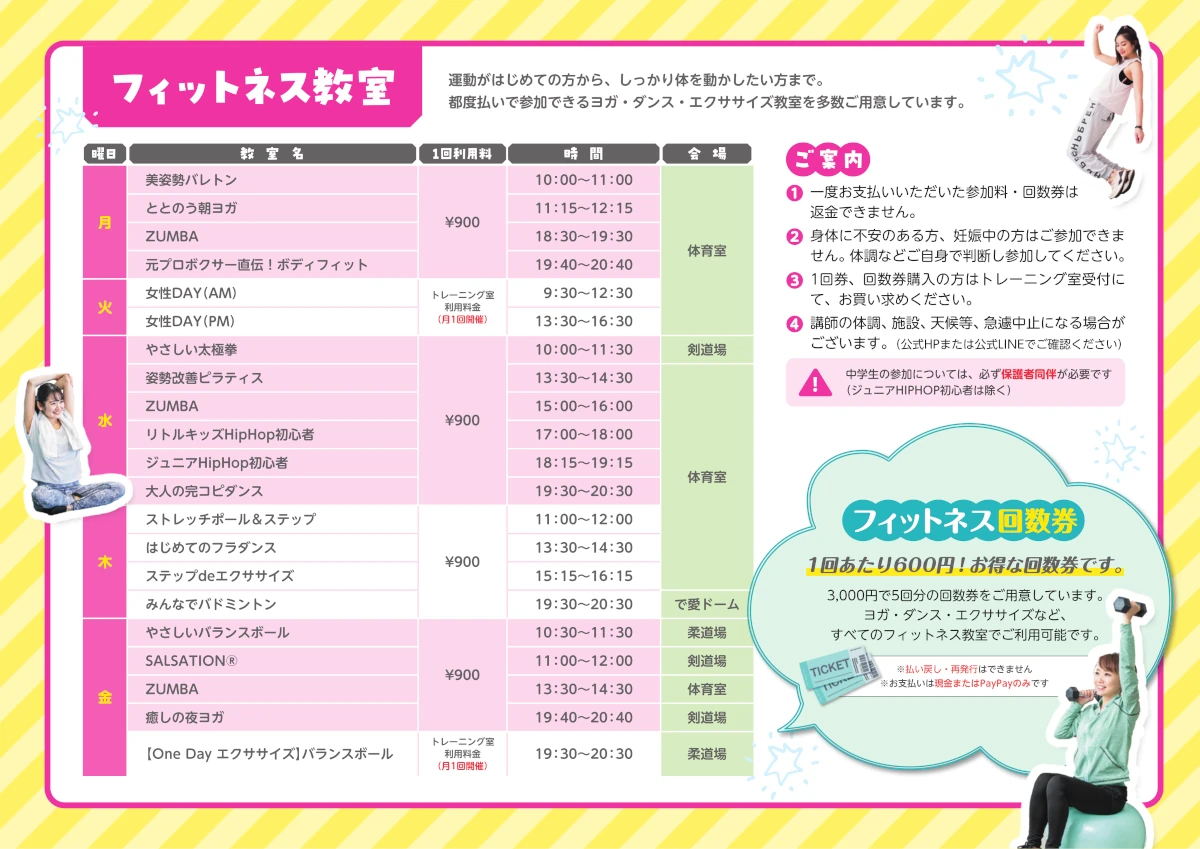 トレーニング室受付へ電話・メールにてご連絡下さい【先着順・定員締切】